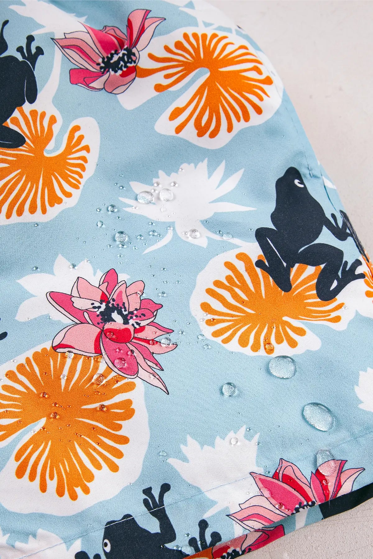 Boys Swim Short, Frog Lotus Pattern, Beach Swimwear for Boys, Colorful Boys Swim Trunk