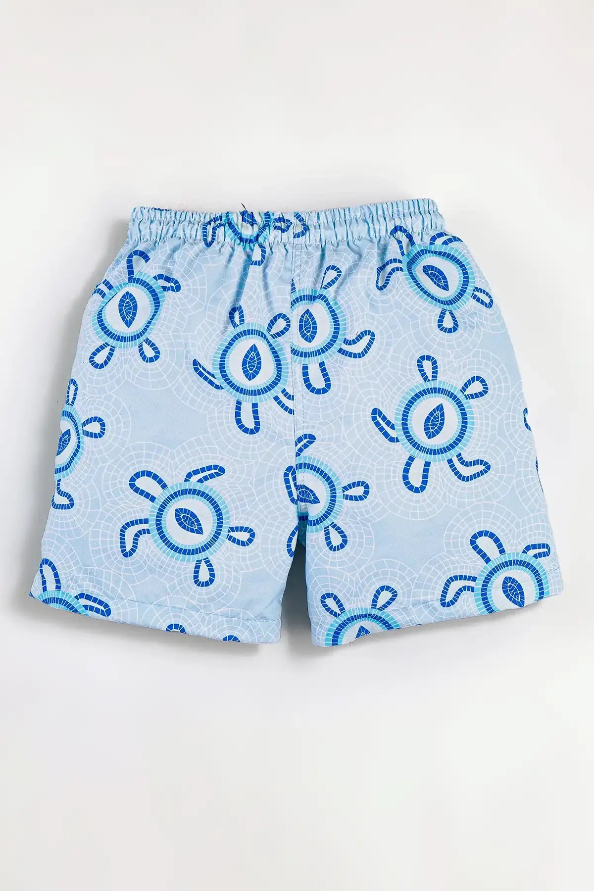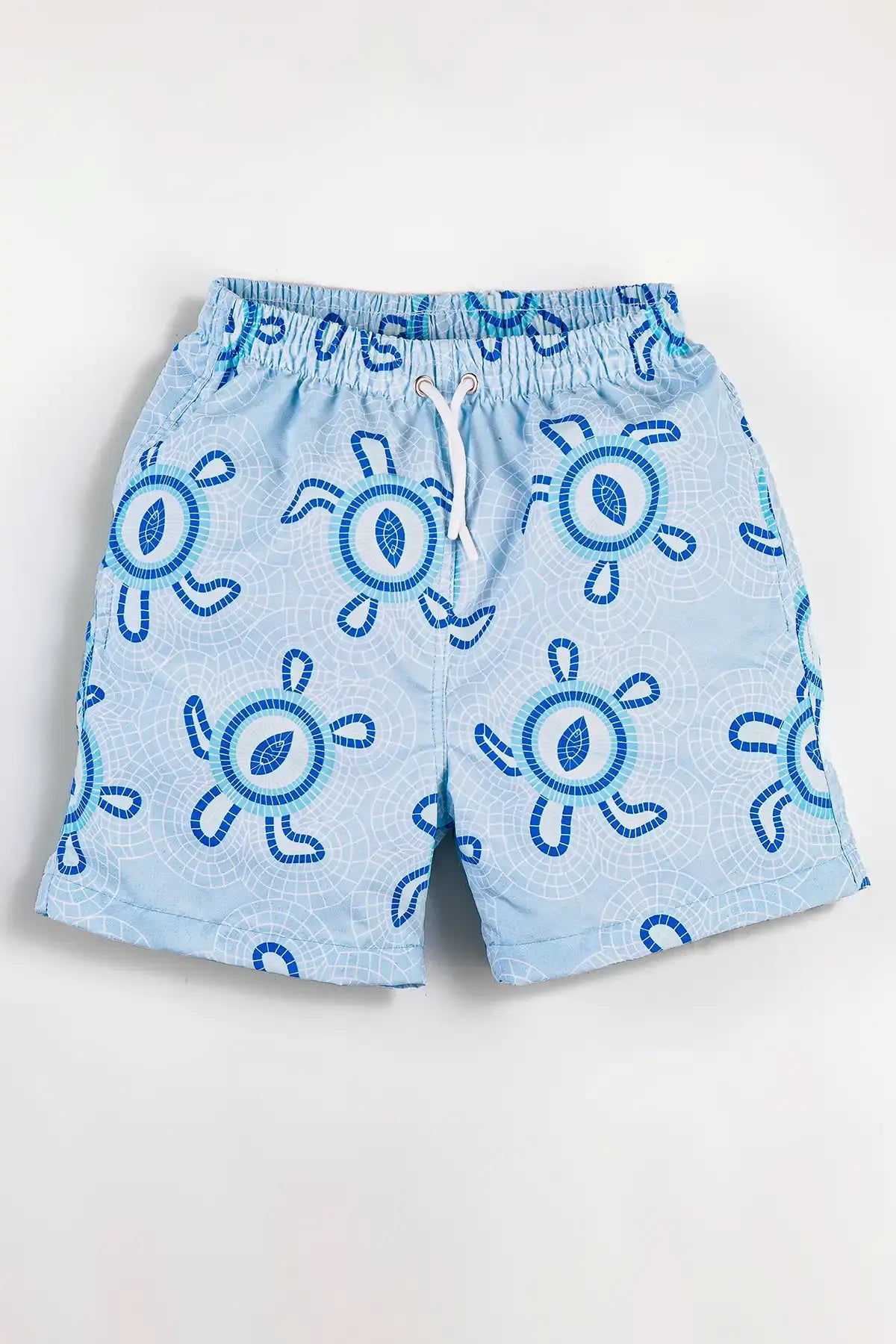 Boys Swim Short, Mosaic Turtle Pattern, Beach Swimwear for Boys, Colorful Boys Swim Trunk
